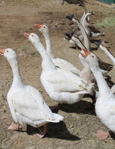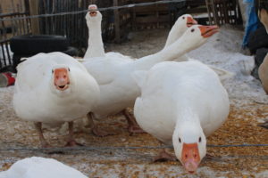 We have two kinds of geese. White Emdem’s and Brown Chinese
