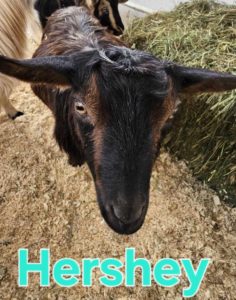 Hi! My name is Hershey. I am a doe. I am a mini silky fainter. I am black and brown highlights with longer hair.