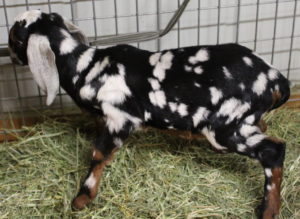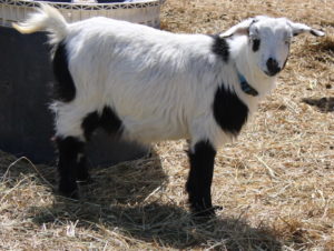 Hi! My name is Obsidian (Snowflake Obsidian Jasper.) I am a Buck. I am a Nubian. I will be registered with the ADGA (The American Dairy Goat Association.) I have great bloodlines for dairy. I am black and white Moon spotted with brown belly, inside legs and other highlights! I have frosted ears! I have been disbudded.