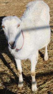 HI! I am Olivia, but my family calls me Olive. I am a Doe. I am a Lamancha, I have little, little ears. I am all white in color, with the pretties golden eye’s.