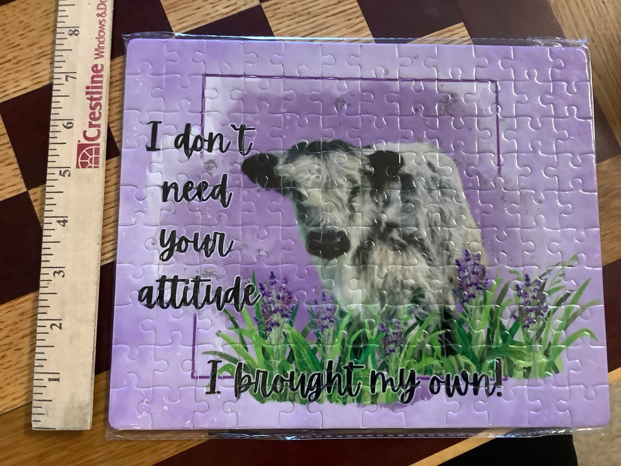 Paired with the fun slogan “I don’t need your attitude, I brought my own,” this puzzle shows off the cow’s sassy, independent spirit. It’s a delightful mix of farm charm and personality, perfect for anyone who loves a little bovine attitude with their puzzles.