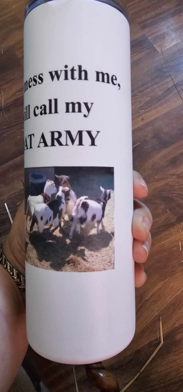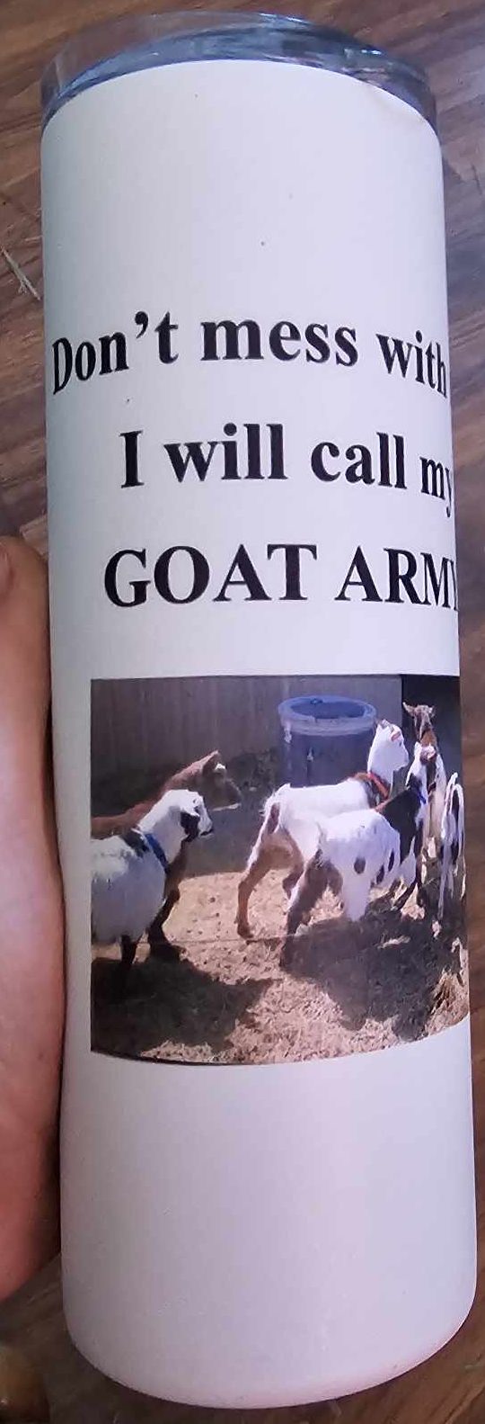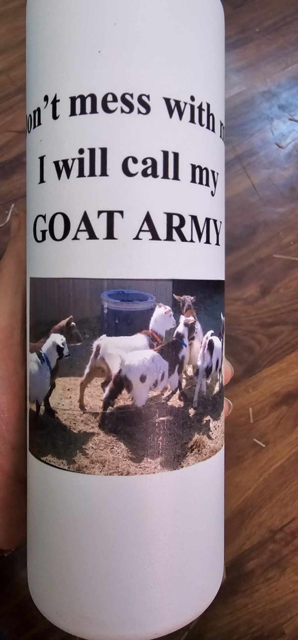 Make a bold statement with our exclusive slogan: “Don’t mess with me, I will call my Goat Army.” This witty phrase sets the tone for a fearless sipping experience.