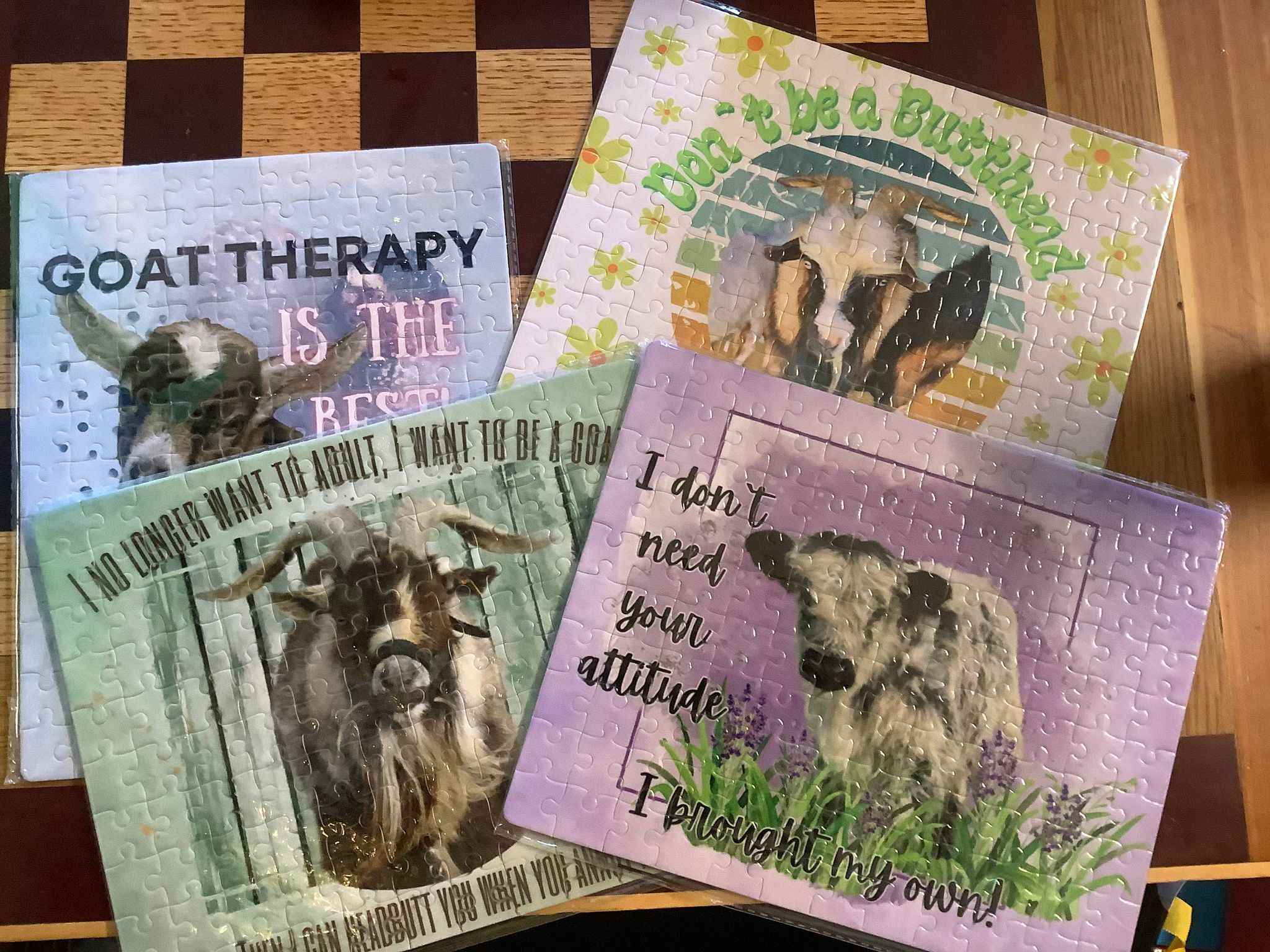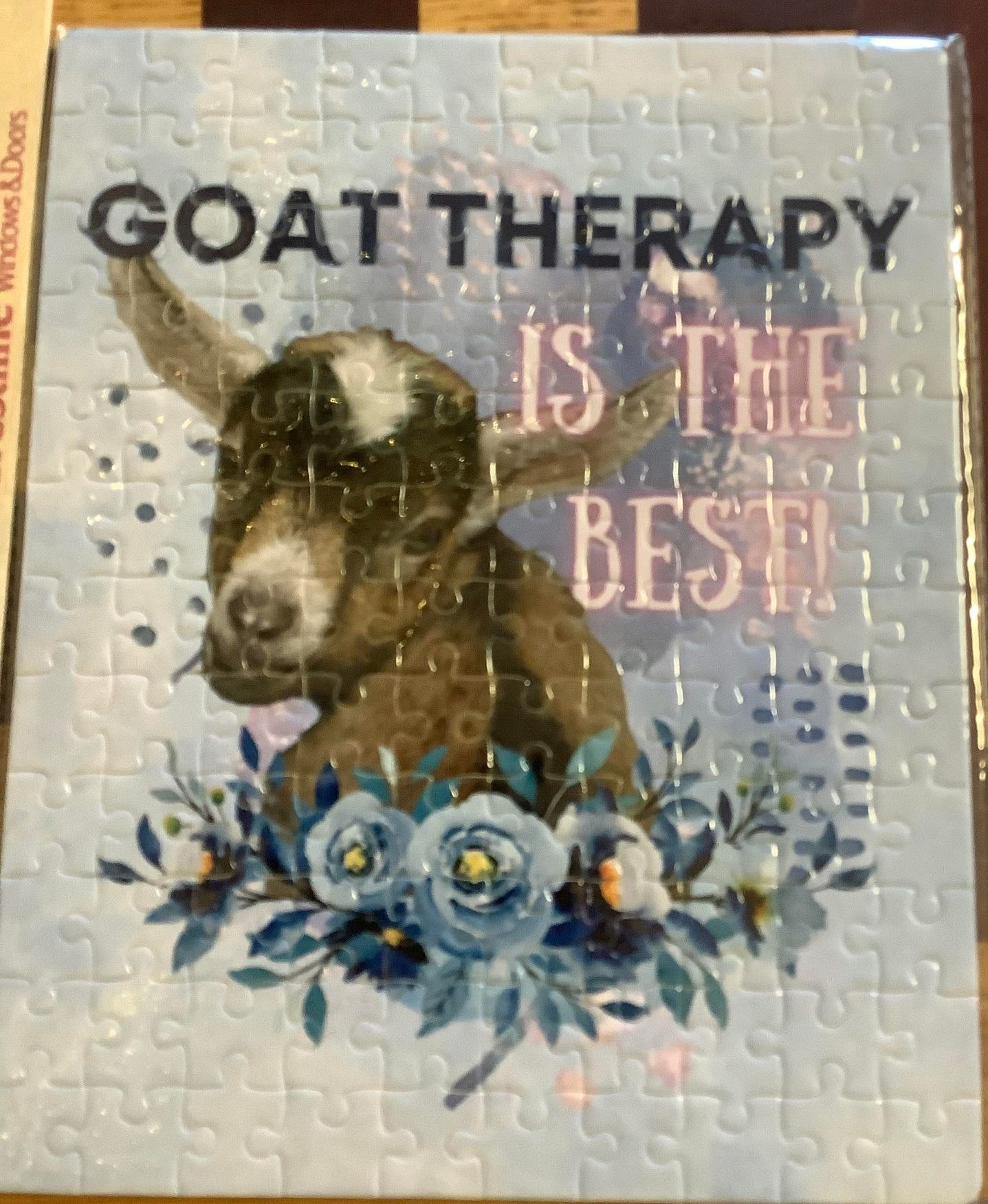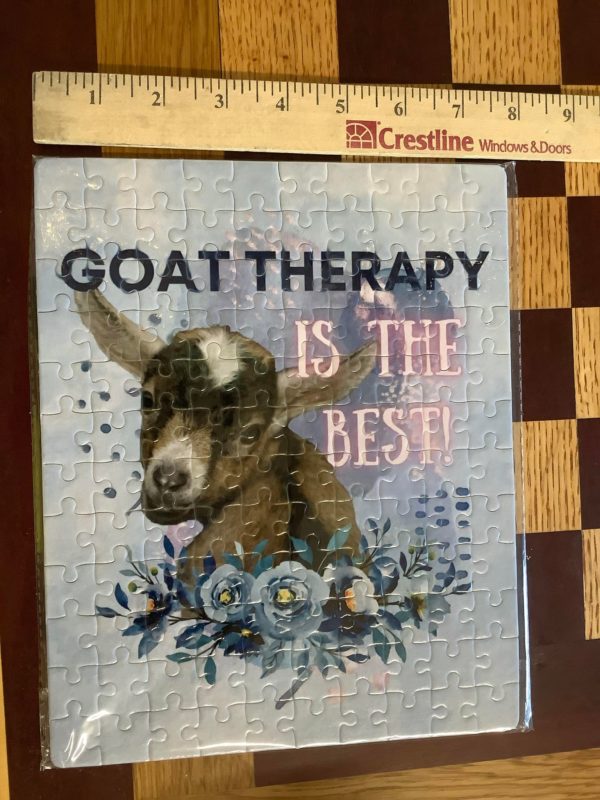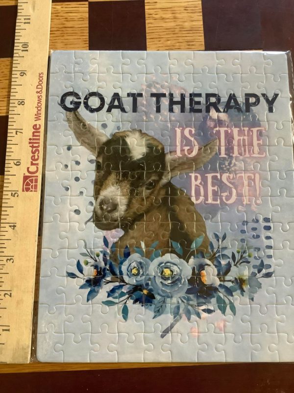 Adding a touch of humor and positivity to the puzzle is the slogan “Goat Therapy is the Best.” This catchy phrase not only celebrates the delightful presence of Nigerian Dwarf Goats but also playfully suggests that spending time with these adorable creatures can be a source of joy and relaxation. As you piece together this delightful puzzle, the image of the Nigerian Dwarf Goat and the spirited slogan create a lighthearted and therapeutic experience, making it more than just a puzzle—it’s a celebration of the therapeutic joy these charming animals bring.