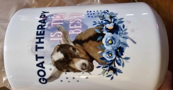 This 15oz ceramic mug is perfect for animal lovers and yoga enthusiasts alike. It features a fun slogan “Goat Therapy is the Best” that will bring a smile to your face every time you use it. The design is on one side with our logo on the other side of mug!