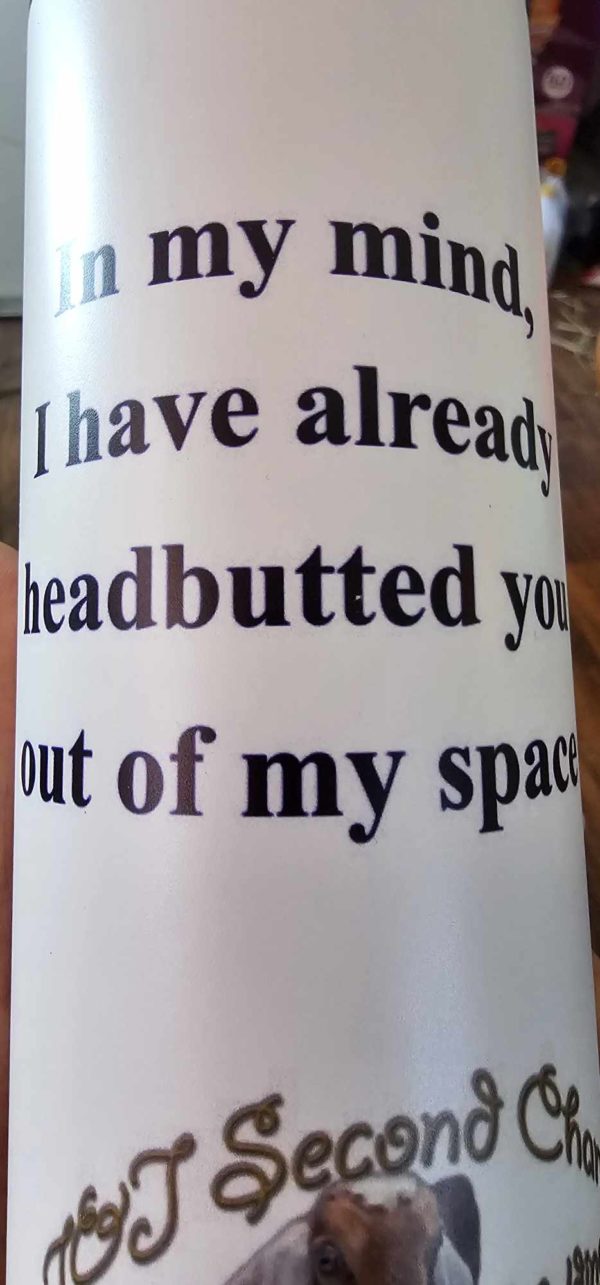 Make a statement with our exclusive slogan: “In my mind, I have already headbutted you out of my space.” Embrace the assertiveness with a touch of humor as you sip in style.