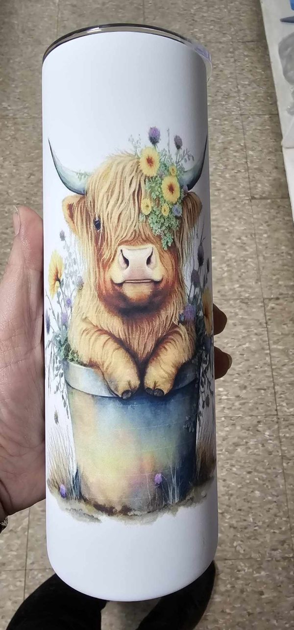 Adding charm to functionality, our tumbler features a pencil drawing of a Highland cow in a tub, with sunflowers in its horns and in the tub is more sunflowers. This whimsical design not only brings joy but also supports Animal Rescue through J & J Second Chance Small Holdings in Rock River, Wyoming. The rescue’s logo proudly graces each tumbler.
