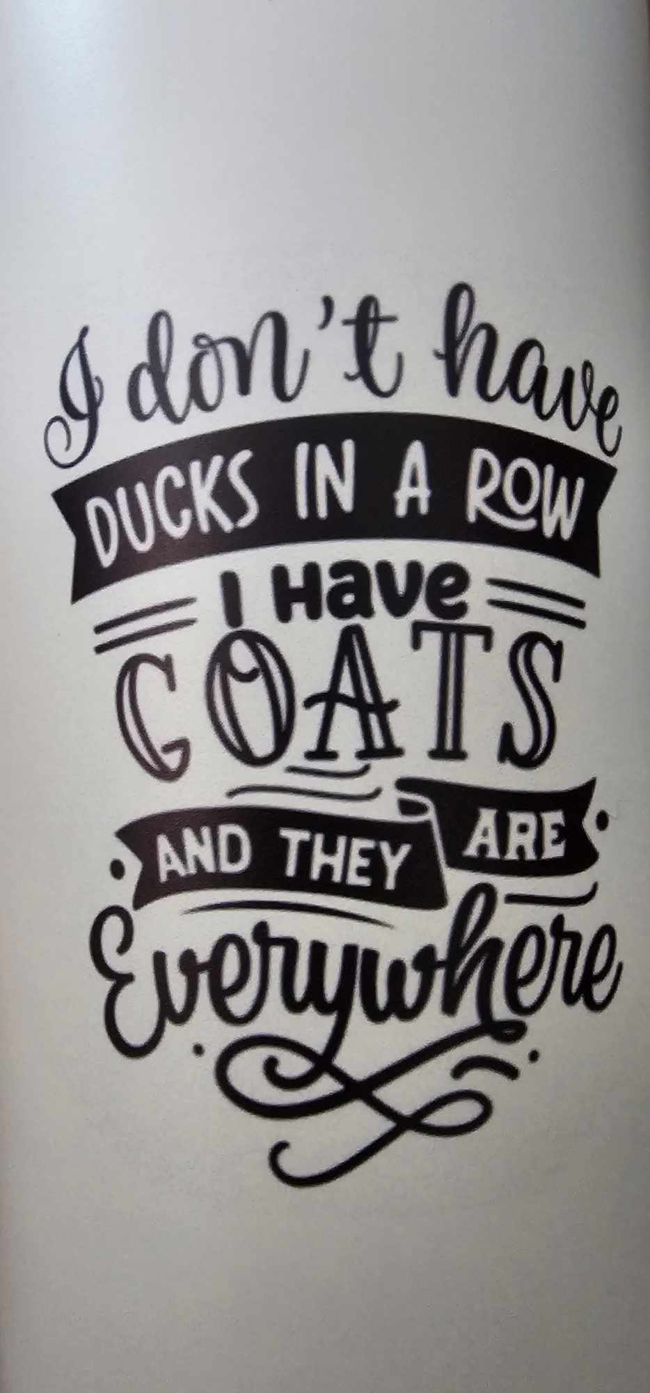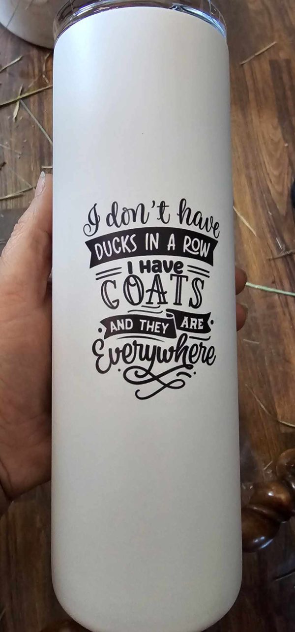 Add a touch of humor to your daily routine with our exclusive slogan: “I don’t have my ducks in a row, I have goats and they are everywhere!” Embrace the chaos with this witty phrase that sets a playful tone for your sipping experience.