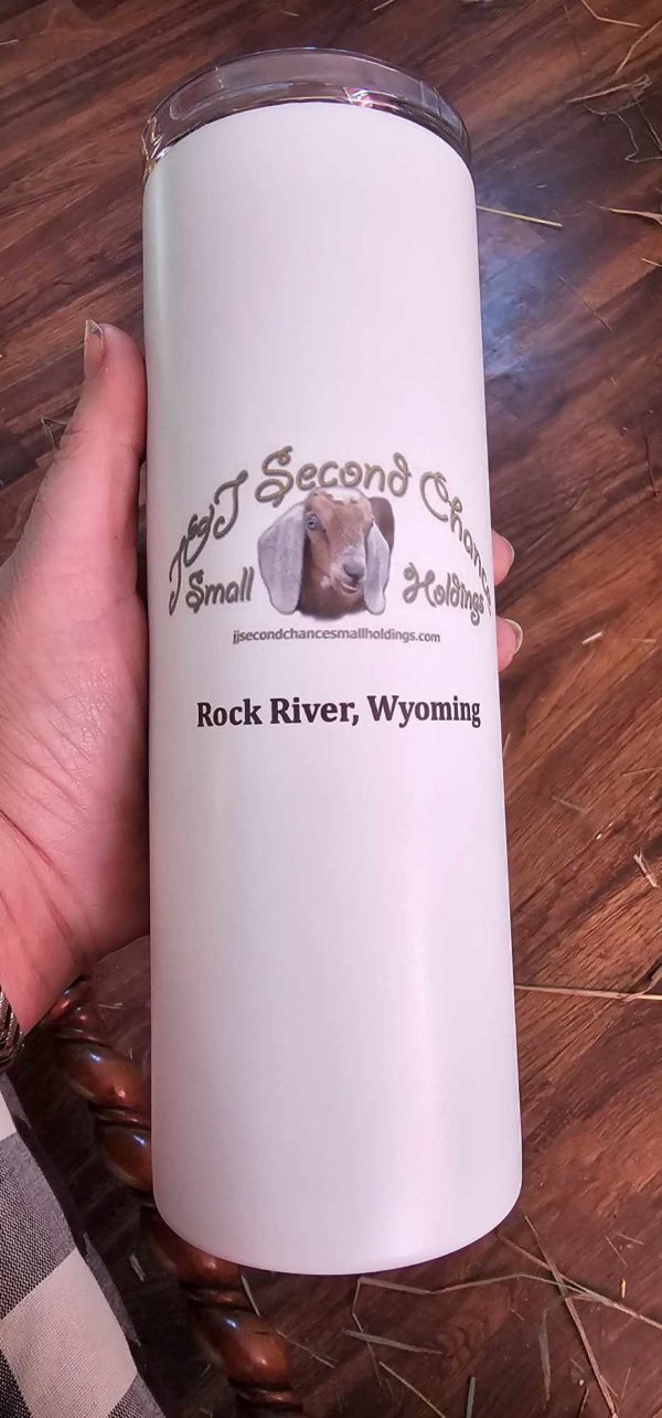 Adding a touch of charm, our tumbler features a miniature black and white highland cow, supporting the cause of Animal Rescue through J & J Second Chance Small Holdings in Rock River, Wyoming. The rescue’s logo proudly graces each tumbler.