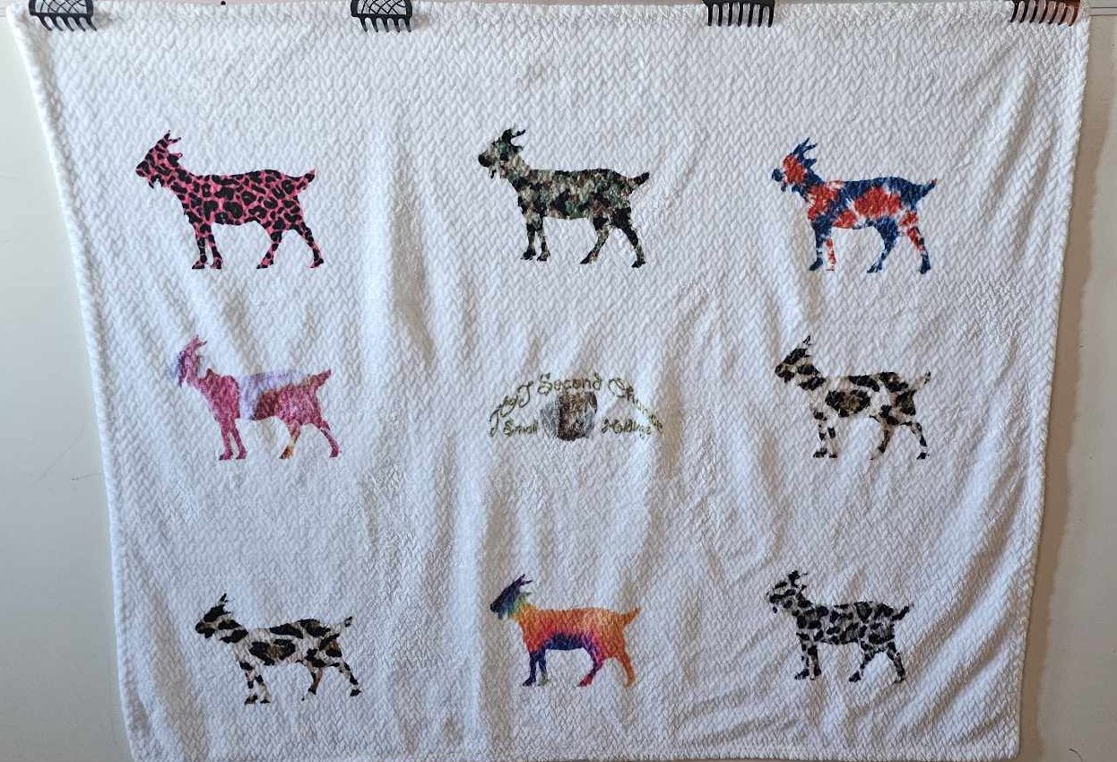 This cozy blanket not only adds warmth to your space but also contributes to a meaningful cause. The playful design featuring vibrant goats and our rescue’s logo reflects our commitment to giving animals a second chance.