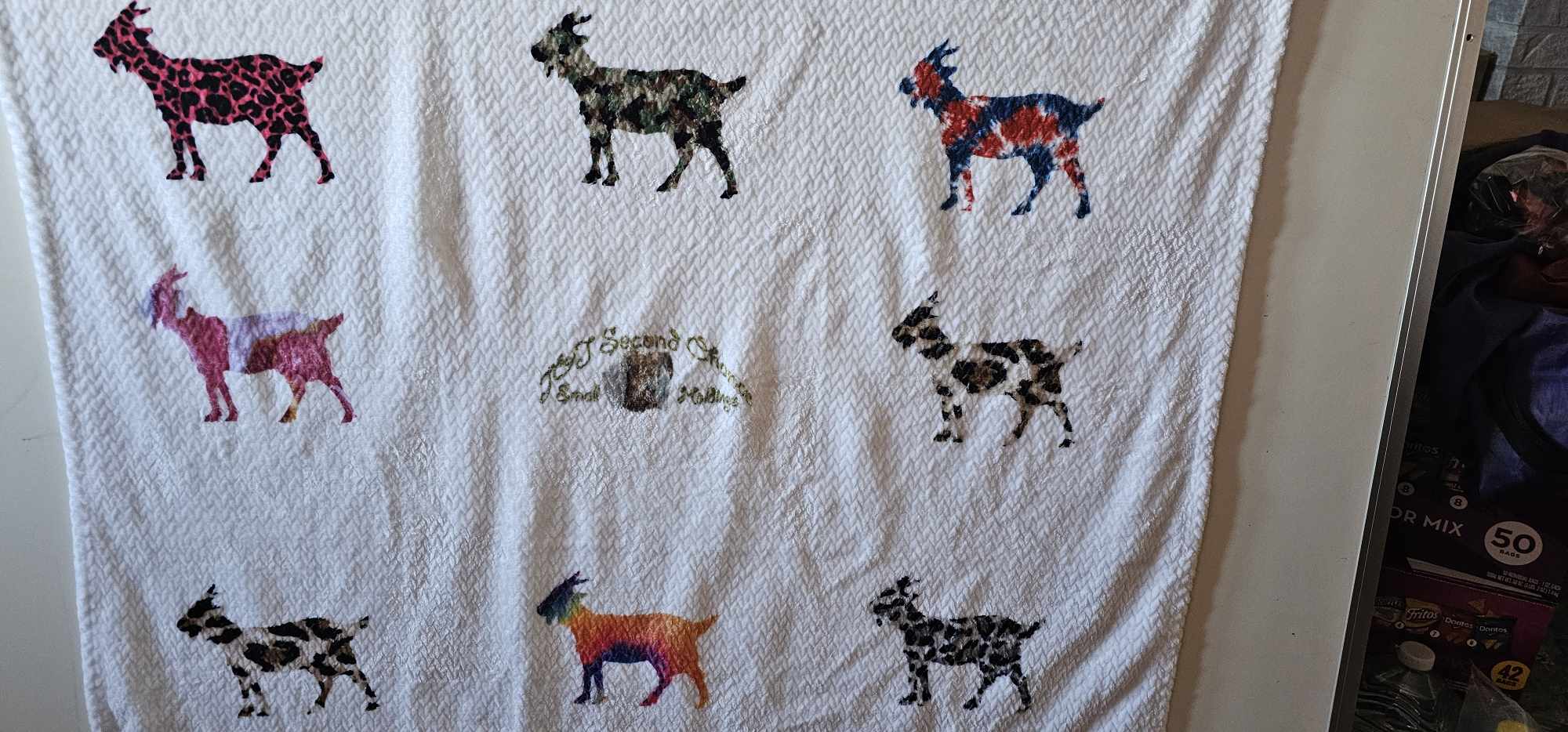 Introducing our Baby Soft Throw Blanket, measuring 3.4′ x 4.1′, adorned with an array of colorful goats and our distinctive logo. Wrap yourself in comfort and style while supporting Animal Rescue through J & J Second Chance Small Holdings in Rock River, Wyoming.