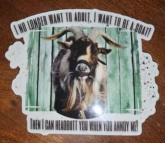 Add some fun to your refrigerator with this cute and humorous Goat magnet! Featuring a horned goat with a slogan that reads “I no longer want to adult I want to be a goat so I can headbutt you when you annoy me”, this magnet is perfect for animal lovers and those who appreciate some good humor.