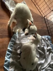 So we are now up to three! So we now have three! Ms. Prissy, Mr. Chip and Mr. Magoo! They are all Mini Fainting goats. W